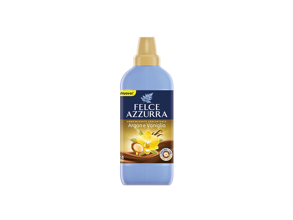 Felce Azzurra koncentrat do płukania tkanin Argan & Vanilla o pojemności 600 ml to wyjątkowy produkt, który nie tylko skutecznie zmiękcza tkaniny, ale także nadaje im niezwykły zapach. Wykorzystując nowoczesną formułę, ten skoncentrowany środek do płukania wprowadza do prania: